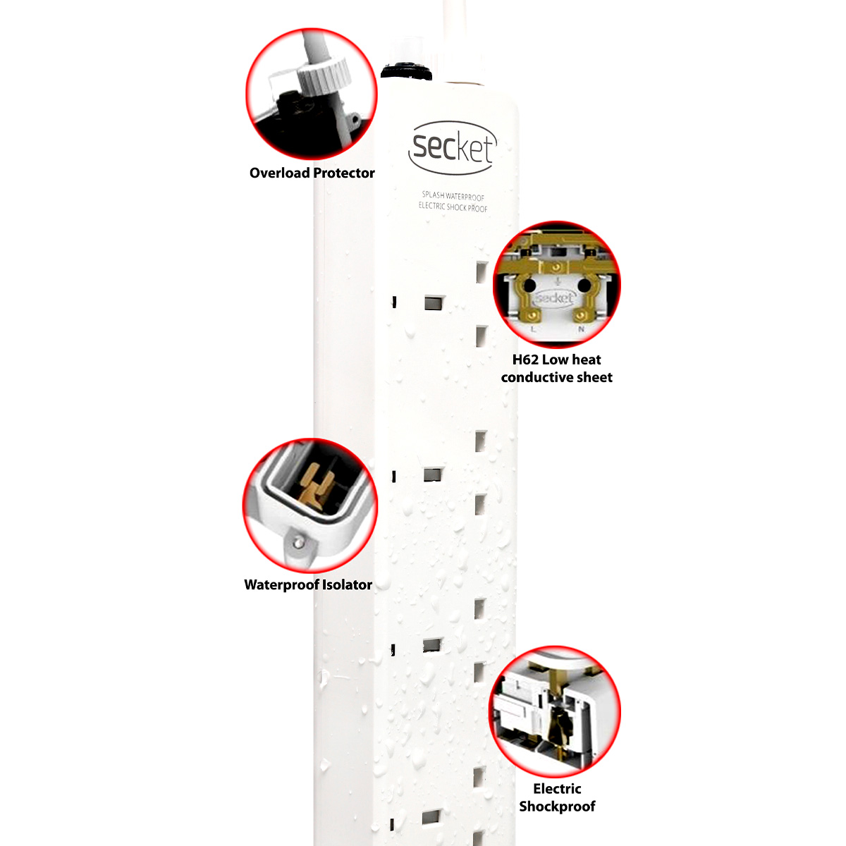 Power up safely with SECKET’s 4-gang extension — IPX6 waterproof, shock-proof, and overload-protected for reliable multi-device use even in damp areas as well as high-risk zones like bathrooms, outdoor gardens and balconies.
